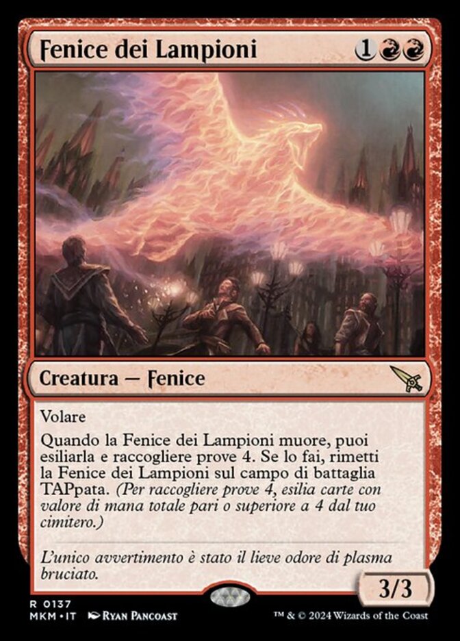 | Rules | Flying When Lamplight Phoenix dies, you may exile it and collect evidence 4. If you do, return Lamplight Phoenix to the battlefield tapped. (To collect evidence 4, exile cards with total mana value 4 or greater from your graveyard.) |