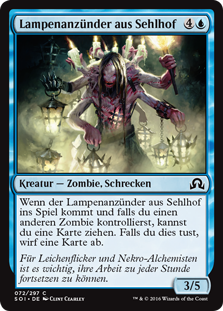 | Rules | When Lamplighter of Selhoff enters the battlefield, if you control another Zombie, you may draw a card. If you do, discard a card. |