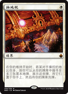 | Rules | At the beginning of your upkeep, if an opponent controls more lands than you, you may search your library for up to three basic land cards, reveal them, put them into your hand, then shuffle. |