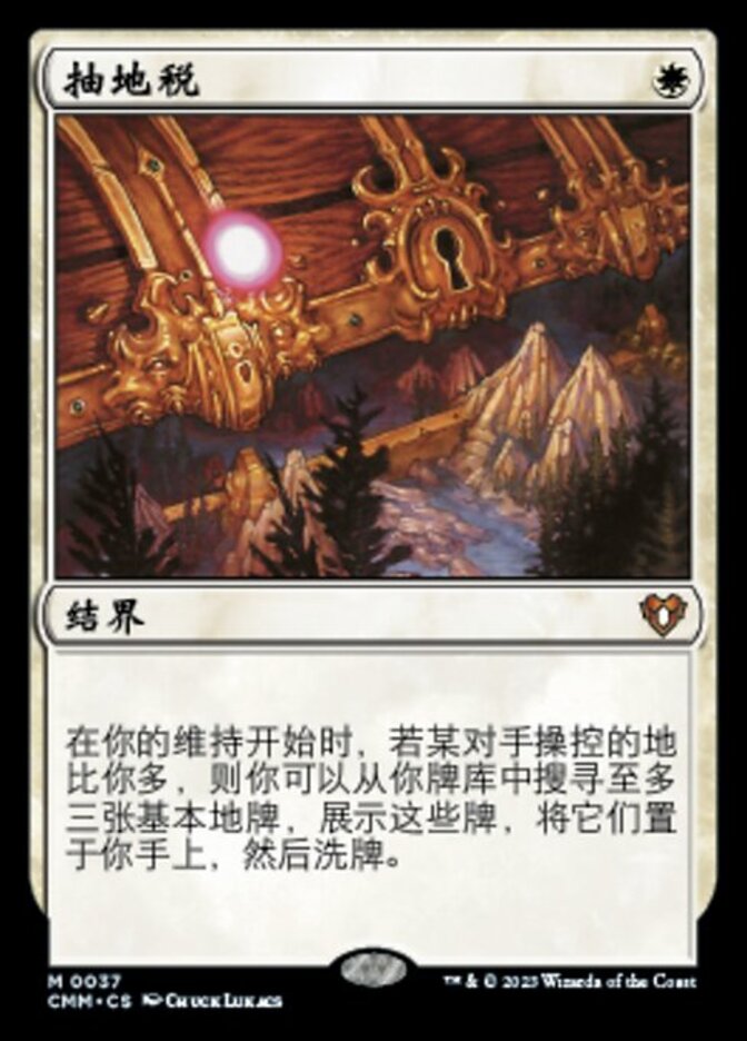 | Rules | At the beginning of your upkeep, if an opponent controls more lands than you, you may search your library for up to three basic land cards, reveal them, put them into your hand, then shuffle. |