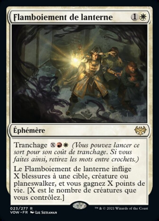 | Rules | Cleave (You may cast this spell for its cleave cost. If you do, remove the words in square brackets.) Lantern Flare deals X damage to target creature or planeswalker and you gain X life. [X is the number of creatures you control.] |