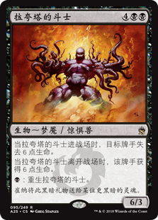 | Rules | When Laquatus's Champion enters the battlefield, target player loses 6 life. When Laquatus's Champion leaves the battlefield, that player gains 6 life. : Regenerate Laquatus's Champion. |