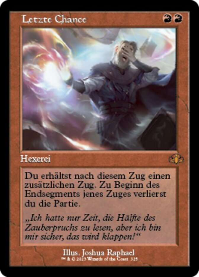 | Rules | Take an extra turn after this one. At the beginning of that turn's end step, you lose the game. |