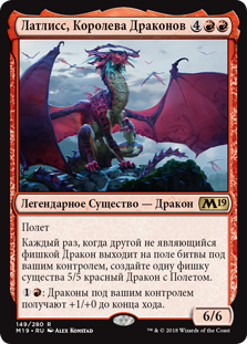 | Rules | Flying Whenever another nontoken Dragon enters the battlefield under your control, create a 5/5 red Dragon creature token with flying. : Dragons you control get +1/+0 until end of turn. |