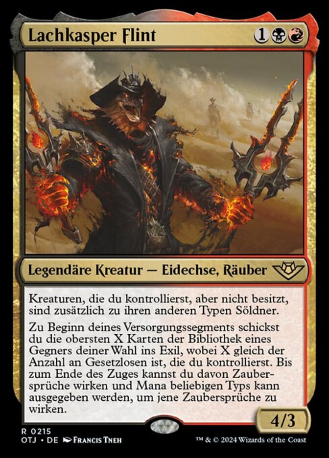 | Rules | Creatures you control but don't own are Mercenaries in addition to their other types. At the beginning of your upkeep, exile the top X cards of target opponent's library, where X is the number of outlaws you control. Until end of turn, you may cast spells from among those cards, and mana of any type can be spent to cast those spells. |