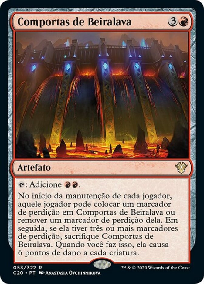 | Rules | : Add . At the beginning of each player's upkeep, that player may put a doom counter on Lavabrink Floodgates or remove a doom counter from it. Then if it has three or more doom counters on it, sacrifice Lavabrink Floodgates. When you do, it deals 6 damage to each creature. |