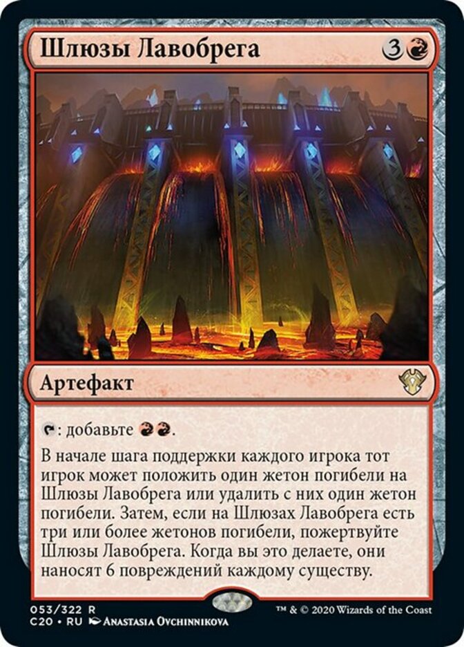 | Rules | : Add . At the beginning of each player's upkeep, that player may put a doom counter on Lavabrink Floodgates or remove a doom counter from it. Then if it has three or more doom counters on it, sacrifice Lavabrink Floodgates. When you do, it deals 6 damage to each creature. |