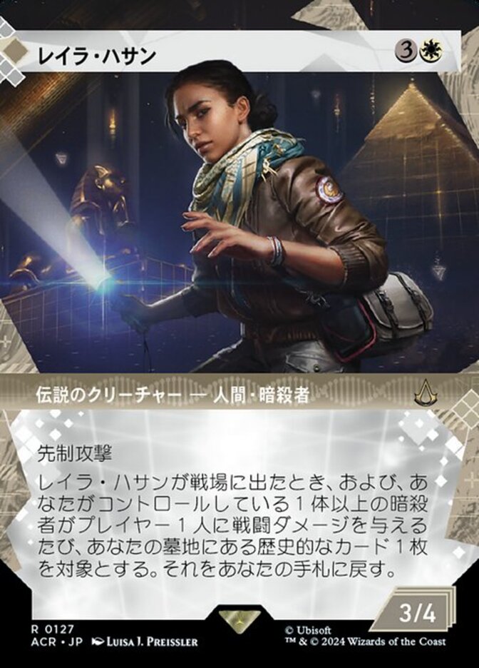 | Rules | First strike When Layla Hassan enters the battlefield and whenever one or more Assassins you control deal combat damage to a player, return target historic card from your graveyard to your hand. |