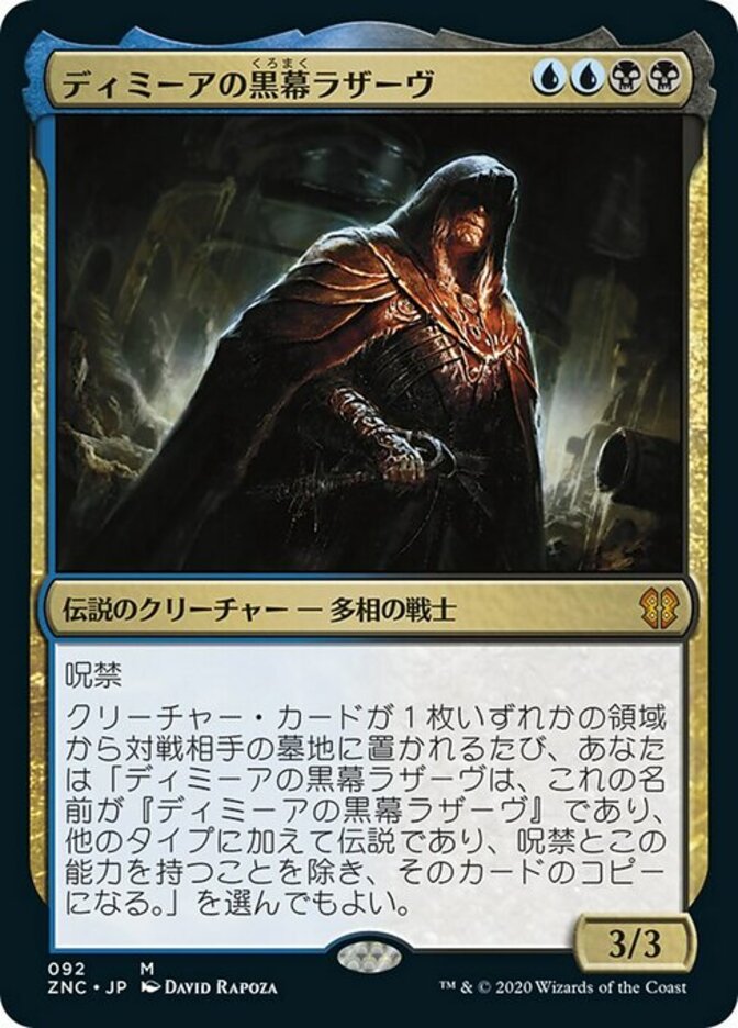 | Rules | Hexproof Whenever a creature card is put into an opponent's graveyard from anywhere, you may have Lazav, Dimir Mastermind become a copy of that card, except its name is Lazav, Dimir Mastermind, it's legendary in addition to its other types, and it has hexproof and this ability. |