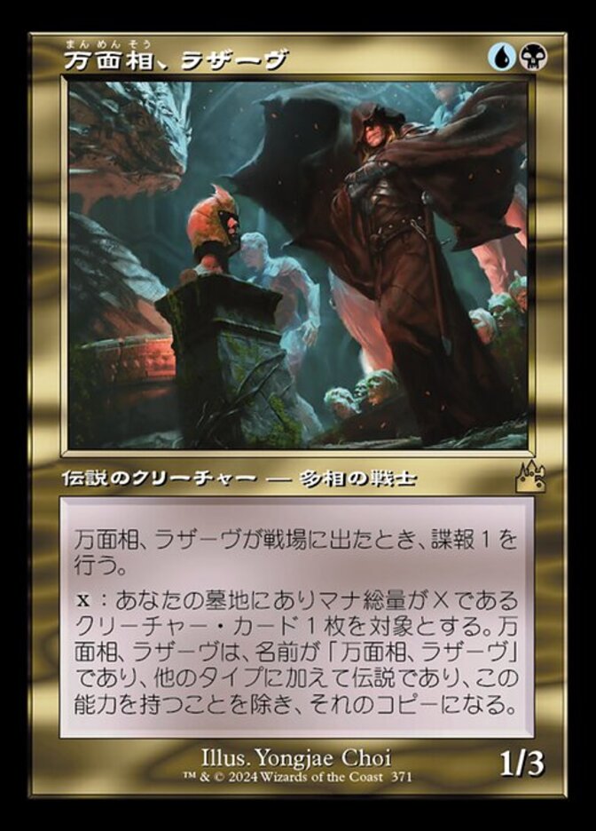 | Rules | When Lazav, the Multifarious enters the battlefield, surveil 1. (Look at the top card of your library. You may put it into your graveyard.) : Lazav, the Multifarious becomes a copy of target creature card in your graveyard with mana value X, except its name is Lazav, the Multifarious, it's legendary in addition to its other types, and it has this ability. |