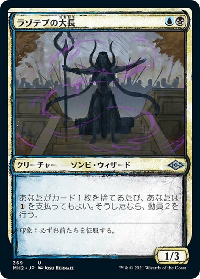 | Rules | Whenever you discard a card, you may pay . If you do, amass 2. (Put two +1/+1 counters on an Army you control. If you don't control one, create a 0/0 black Zombie Army creature token first.) |