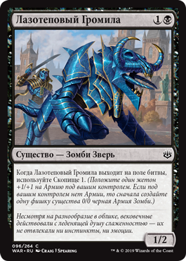 | Rules | When Lazotep Reaver enters the battlefield, amass 1. (Put a +1/+1 counter on an Army you control. If you don't control one, create a 0/0 black Zombie Army creature token first.) |