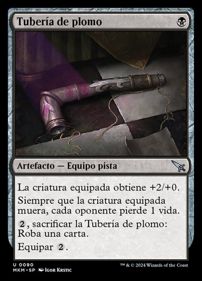 | Rules | Equipped creature gets +2/+0. Whenever equipped creature dies, each opponent loses 1 life. , Sacrifice Lead Pipe: Draw a card. Equip |