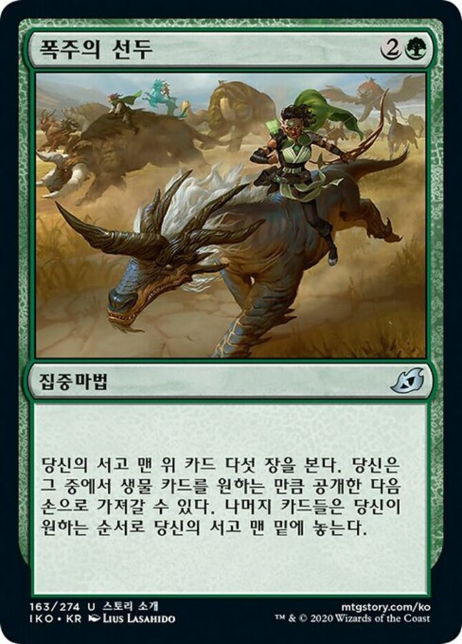 | Rules | Look at the top five cards of your library. You may reveal any number of creature cards from among them and put the revealed cards into your hand. Put the rest on the bottom of your library in any order. |
