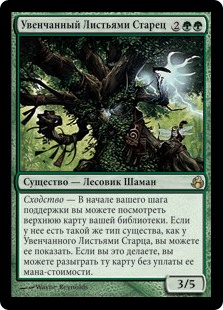| Rules | Kinship — At the beginning of your upkeep, you may look at the top card of your library. If it shares a creature type with Leaf-Crowned Elder, you may reveal it. If you do, you may play that card without paying its mana cost. |
