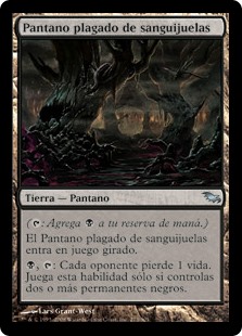 | Rules | (: Add .) Leechridden Swamp enters the battlefield tapped. , : Each opponent loses 1 life. Activate only if you control two or more black permanents. |