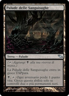 | Rules | (: Add .) Leechridden Swamp enters the battlefield tapped. , : Each opponent loses 1 life. Activate only if you control two or more black permanents. |