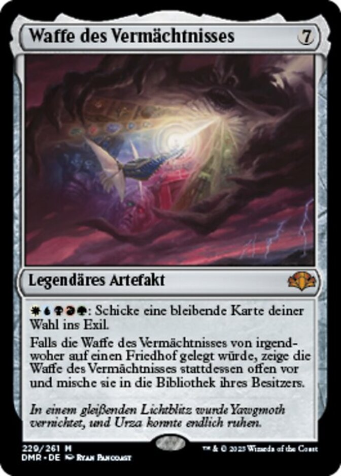 | Rules | : Exile target permanent. If Legacy Weapon would be put into a graveyard from anywhere, reveal Legacy Weapon and shuffle it into its owner's library instead. |