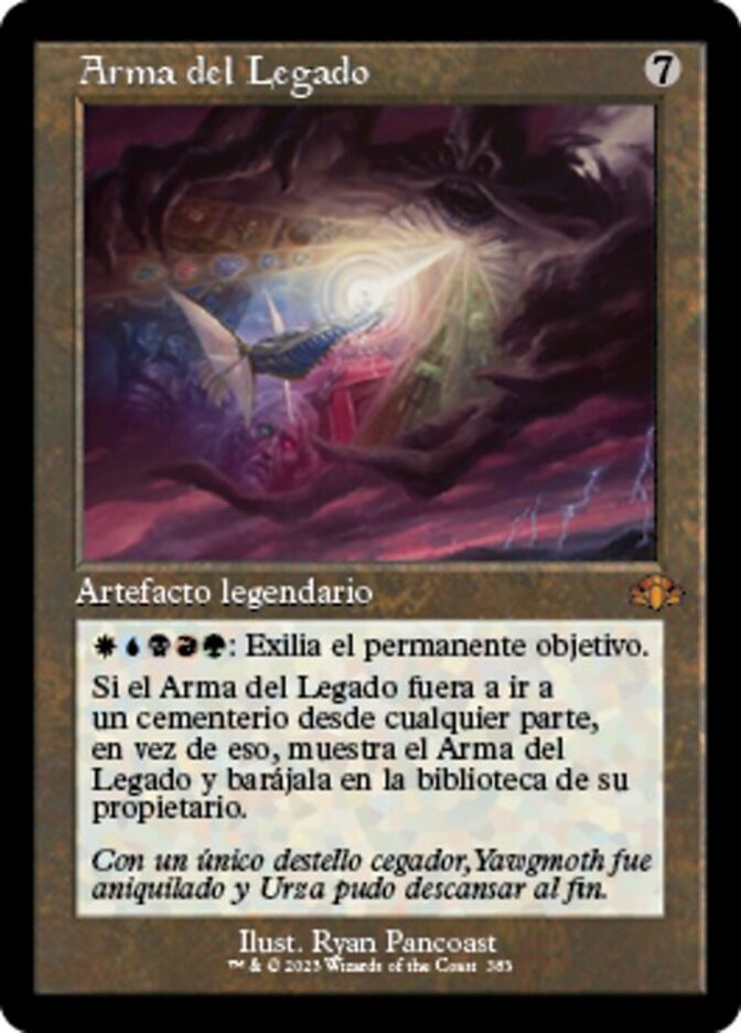| Rules | : Exile target permanent. If Legacy Weapon would be put into a graveyard from anywhere, reveal Legacy Weapon and shuffle it into its owner's library instead. |