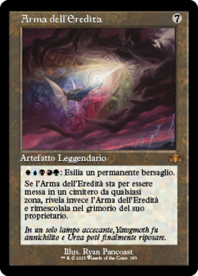 | Rules | : Exile target permanent. If Legacy Weapon would be put into a graveyard from anywhere, reveal Legacy Weapon and shuffle it into its owner's library instead. |