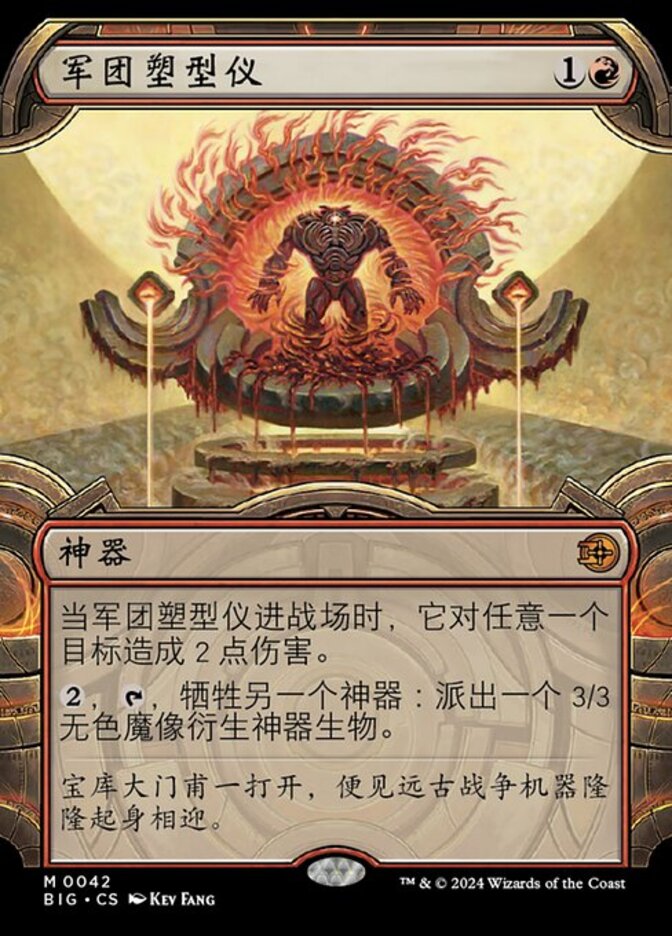 | Rules | When Legion Extruder enters the battlefield, it deals 2 damage to any target. , , Sacrifice another artifact: Create a 3/3 colorless Golem artifact creature token. |
