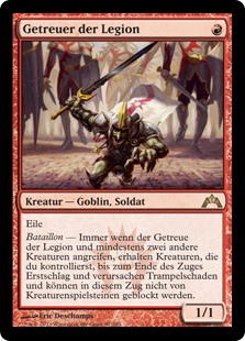 | Rules | Haste Battalion — Whenever Legion Loyalist and at least two other creatures attack, creatures you control gain first strike and trample until end of turn and can't be blocked by creature tokens this turn. |