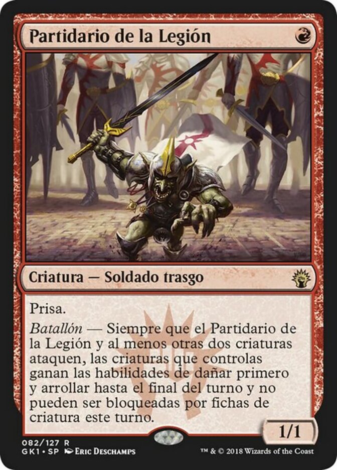 | Rules | Haste Battalion — Whenever Legion Loyalist and at least two other creatures attack, creatures you control gain first strike and trample until end of turn and can't be blocked by creature tokens this turn. |