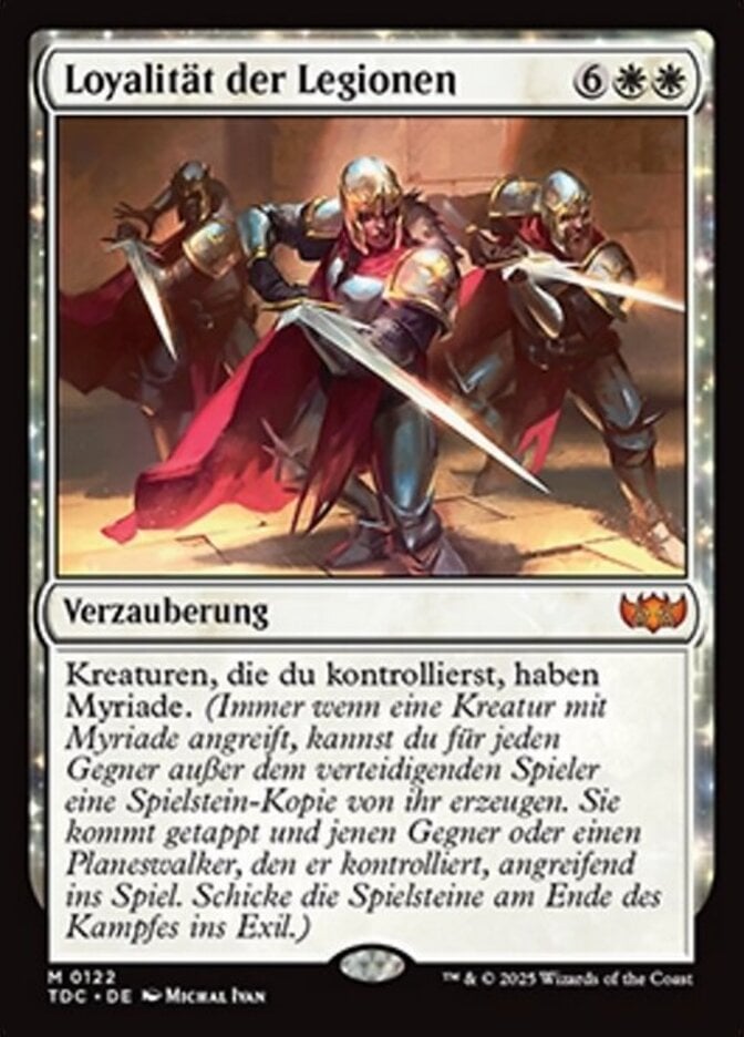 | Rules | Creatures you control have myriad. (Whenever a creature with myriad attacks, for each opponent other than defending player, you may create a token that's a copy of that creature that's tapped and attacking that player or a planeswalker they control. Exile the tokens at end of combat.) |