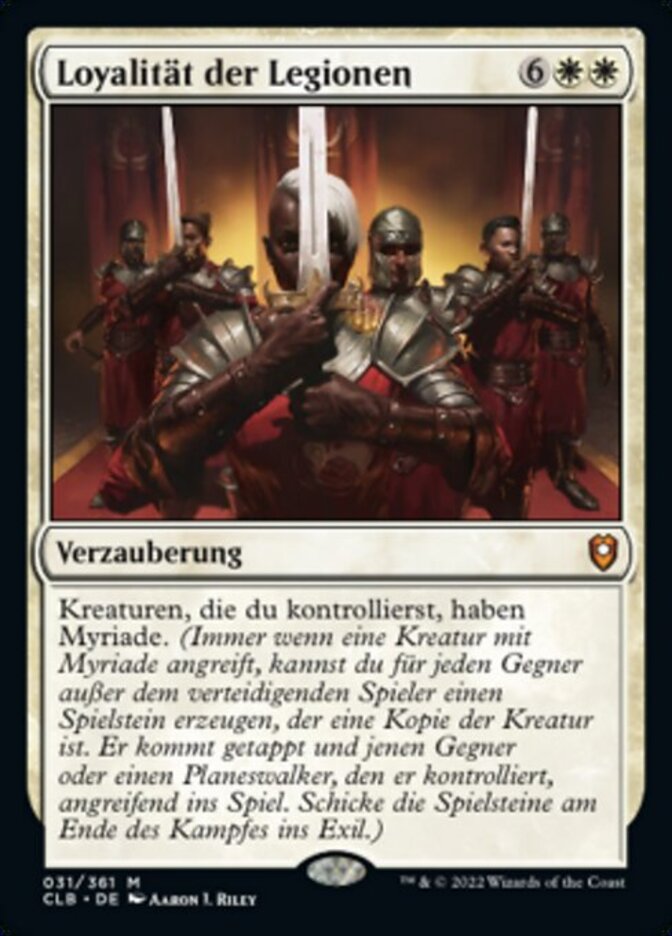| Rules | Creatures you control have myriad. (Whenever a creature with myriad attacks, for each opponent other than defending player, you may create a token that's a copy of that creature that's tapped and attacking that player or a planeswalker they control. Exile the tokens at end of combat.) |