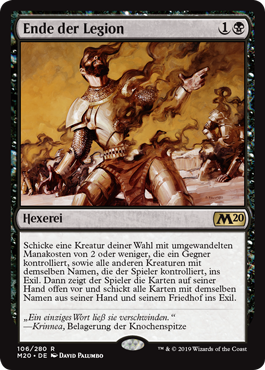| Rules | Exile target creature an opponent controls with mana value 2 or less and all other creatures that player controls with the same name as that creature. Then that player reveals their hand and exiles all cards with that name from their hand and graveyard. |