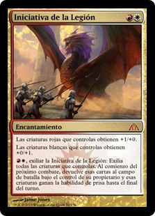 | Rules | Red creatures you control get +1/+0. White creatures you control get +0/+1. , Exile Legion's Initiative: Exile all creatures you control. At the beginning of the next combat, return those cards to the battlefield under their owner's control and those creatures gain haste until end of turn. |