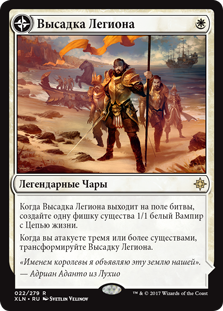 | Rules | When Legion's Landing enters the battlefield, create a 1/1 white Vampire creature token with lifelink. When you attack with three or more creatures, transform Legion's Landing. // (Transforms from Legion's Landing.) : Add . , : Create a 1/1 white Vampire creature token with lifelink. |
