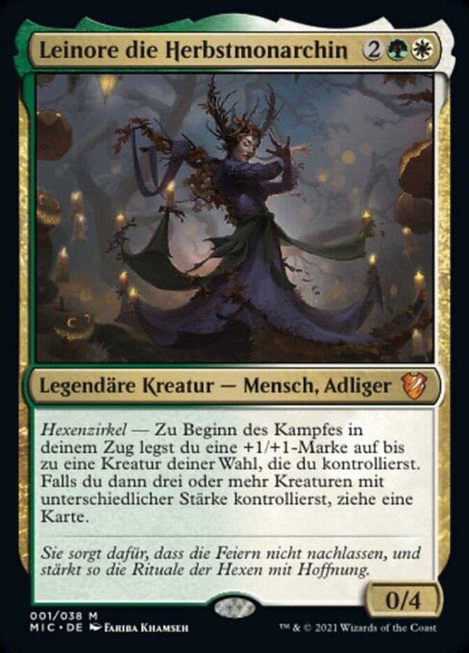 Languages Leinore, Autumn Sovereign Leinore, souveraine de l'automne 暮秋君王蕾諾爾 Leinore, Sovrana d'Autunno Leinore, soberana del otoño 暮秋君王蕾诺尔 Лейнора, Владычица Осени Leinore, Soberana do Outono 秋の君主、レノール Leinore die Herbstmonarchin