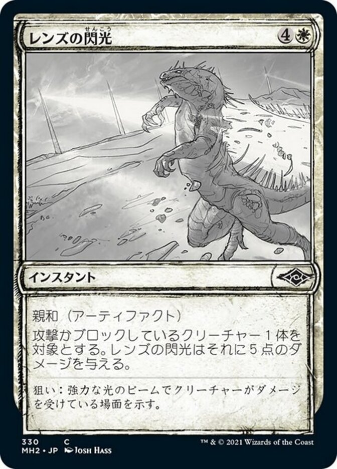 | Rules | Affinity for artifacts (This spell costs less to cast for each artifact you control.) Lens Flare deals 5 damage to target attacking or blocking creature. |