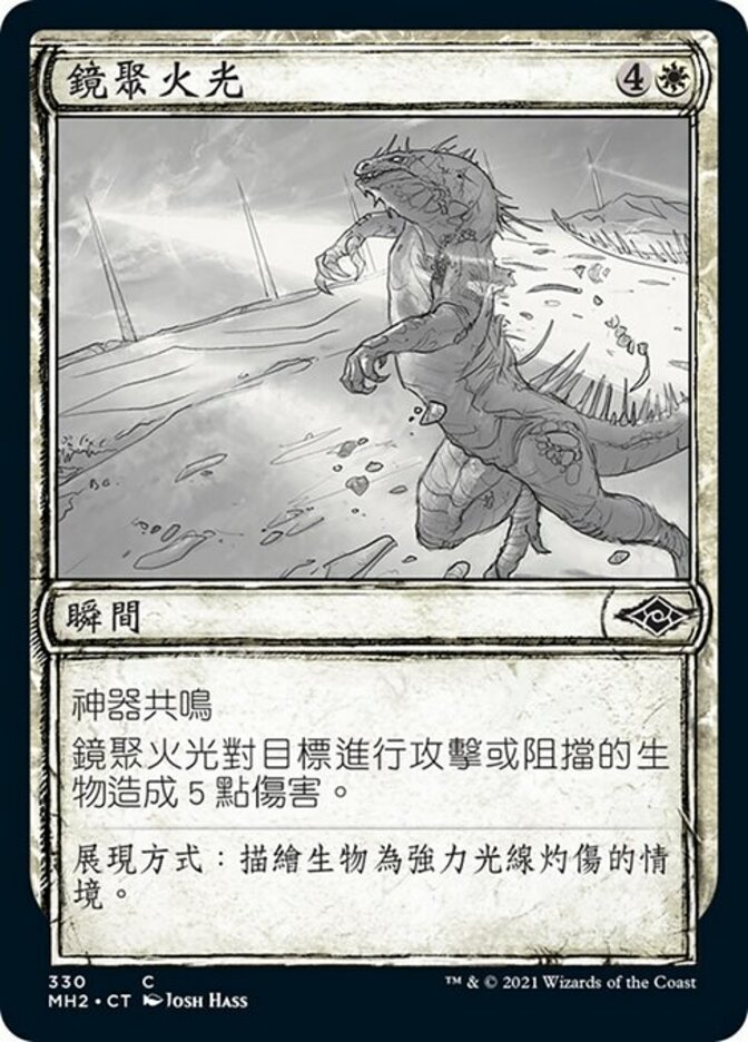 | Rules | Affinity for artifacts (This spell costs less to cast for each artifact you control.) Lens Flare deals 5 damage to target attacking or blocking creature. |