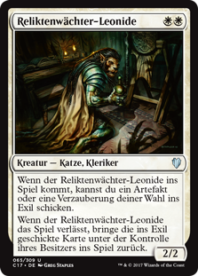 | Rules | When Leonin Relic-Warder enters the battlefield, you may exile target artifact or enchantment. When Leonin Relic-Warder leaves the battlefield, return the exiled card to the battlefield under its owner's control. |