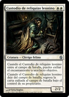 | Rules | When Leonin Relic-Warder enters the battlefield, you may exile target artifact or enchantment. When Leonin Relic-Warder leaves the battlefield, return the exiled card to the battlefield under its owner's control. |
