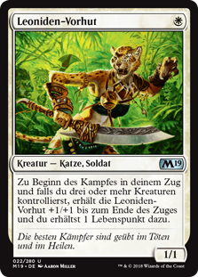 | Rules | At the beginning of combat on your turn, if you control three or more creatures, Leonin Vanguard gets +1/+1 until end of turn and you gain 1 life. |