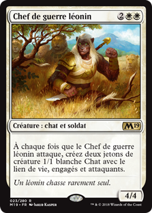 | Rules | Whenever Leonin Warleader attacks, create two 1/1 white Cat creature tokens with lifelink that are tapped and attacking. |