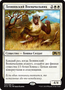 | Rules | Whenever Leonin Warleader attacks, create two 1/1 white Cat creature tokens with lifelink that are tapped and attacking. |