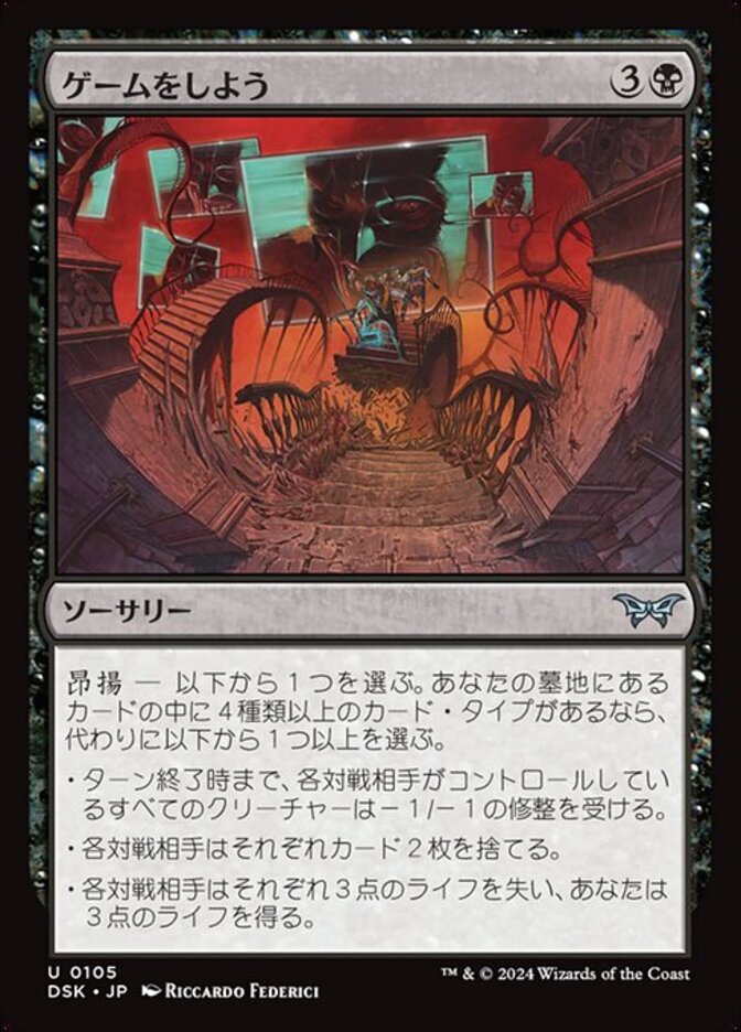 | Rules | Delirium — Choose one. If there are four or more card types among cards in your graveyard, choose one or more instead. • Creatures your opponents control get -1/-1 until end of turn. • Each opponent discards two cards. • Each opponent loses 3 life and you gain 3 life. |