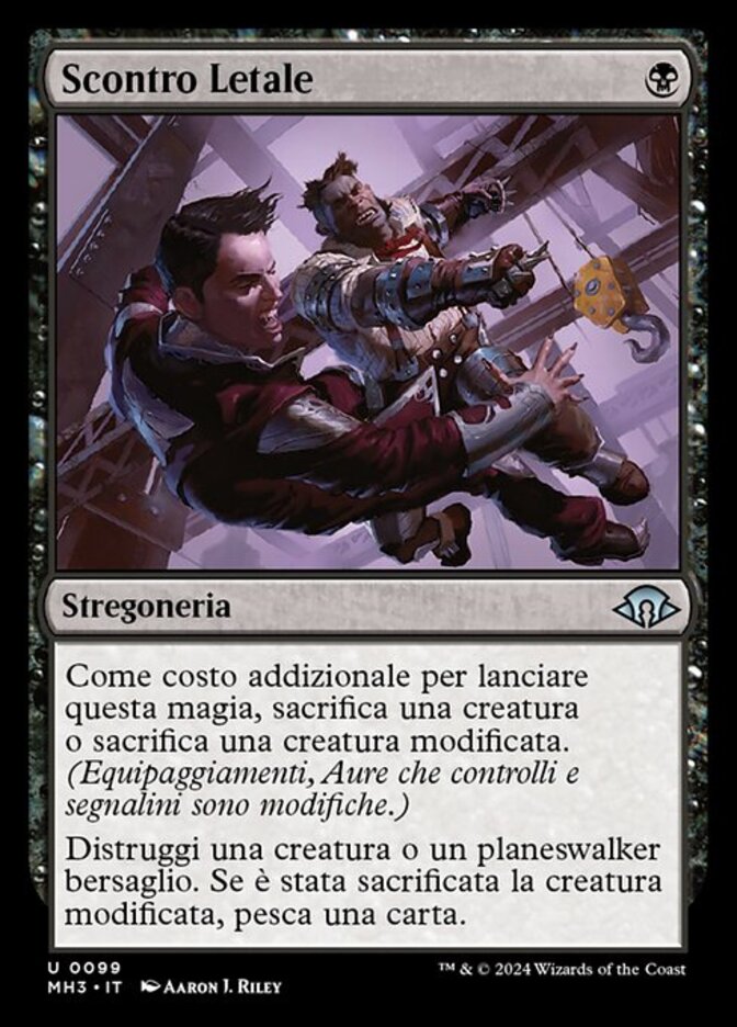 | Rules | As an additional cost to cast this spell, sacrifice a creature or sacrifice a modified creature. (Equipment, Auras you control, and counters are modifications.) Destroy target creature or planeswalker. If the modified creature was sacrificed, draw a card. |