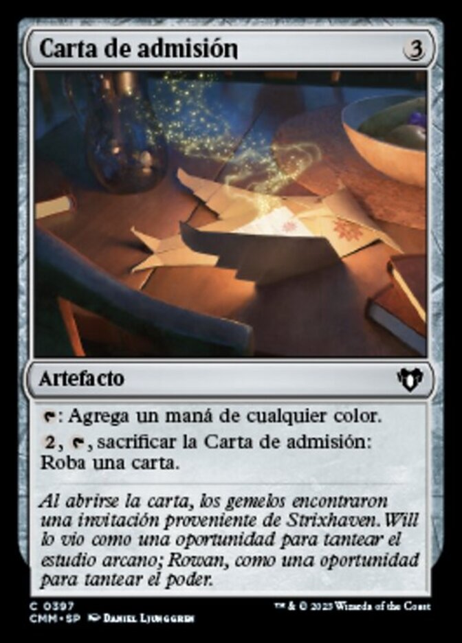 | Rules | : Add one mana of any color. , , Sacrifice Letter of Acceptance: Draw a card. |