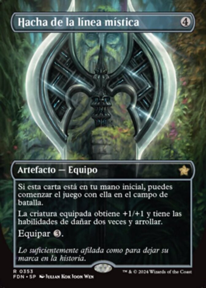 | Rules | If this card is in your opening hand, you may begin the game with it on the battlefield. Equipped creature gets +1/+1 and has double strike and trample. Equip (: Attach to target creature you control. Equip only as a sorcery.) |