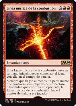 | Rules | If Leyline of Combustion is in your opening hand, you may begin the game with it on the battlefield. Whenever you and/or at least one permanent you control becomes the target of a spell or ability an opponent controls, Leyline of Combustion deals 2 damage to that player. |