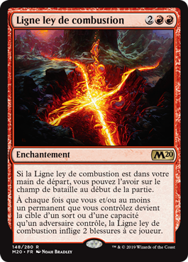 | Rules | If Leyline of Combustion is in your opening hand, you may begin the game with it on the battlefield. Whenever you and/or at least one permanent you control becomes the target of a spell or ability an opponent controls, Leyline of Combustion deals 2 damage to that player. |