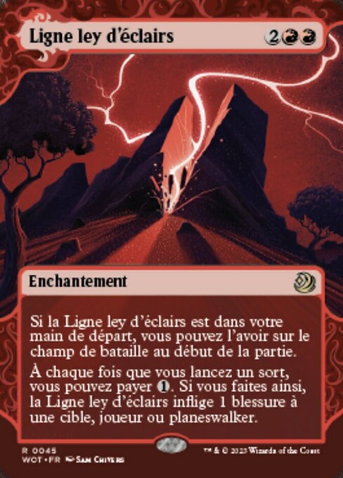 | Rules | If Leyline of Lightning is in your opening hand, you may begin the game with it on the battlefield. Whenever you cast a spell, you may pay . If you do, Leyline of Lightning deals 1 damage to target player or planeswalker. |
