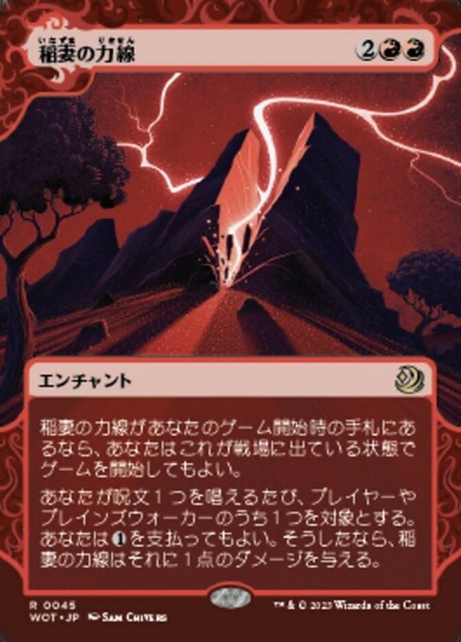 | Rules | If Leyline of Lightning is in your opening hand, you may begin the game with it on the battlefield. Whenever you cast a spell, you may pay . If you do, Leyline of Lightning deals 1 damage to target player or planeswalker. |