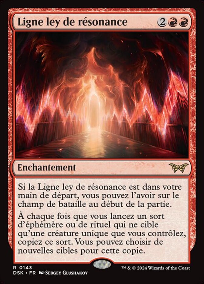 | Rules | If Leyline of Resonance is in your opening hand, you may begin the game with it on the battlefield. Whenever you cast an instant or sorcery spell that targets only a single creature you control, copy that spell. You may choose new targets for the copy. |
