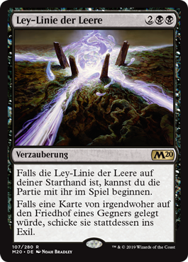 | Rules | If Leyline of the Void is in your opening hand, you may begin the game with it on the battlefield. If a card would be put into an opponent's graveyard from anywhere, exile it instead. |